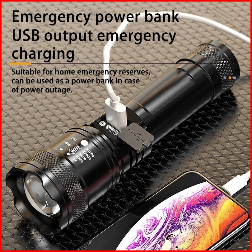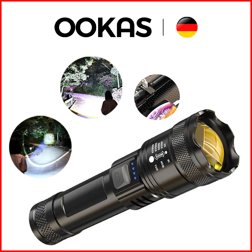 Ookas Senter Zoom Senter Swat Bohlam Lampu Usb Senter Led Terang Tahan Air Peningkatan Kecerahan