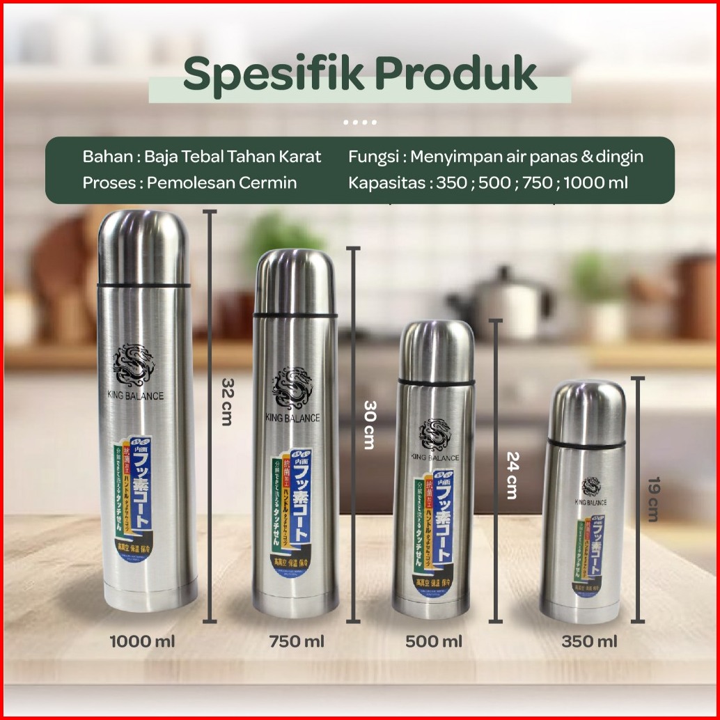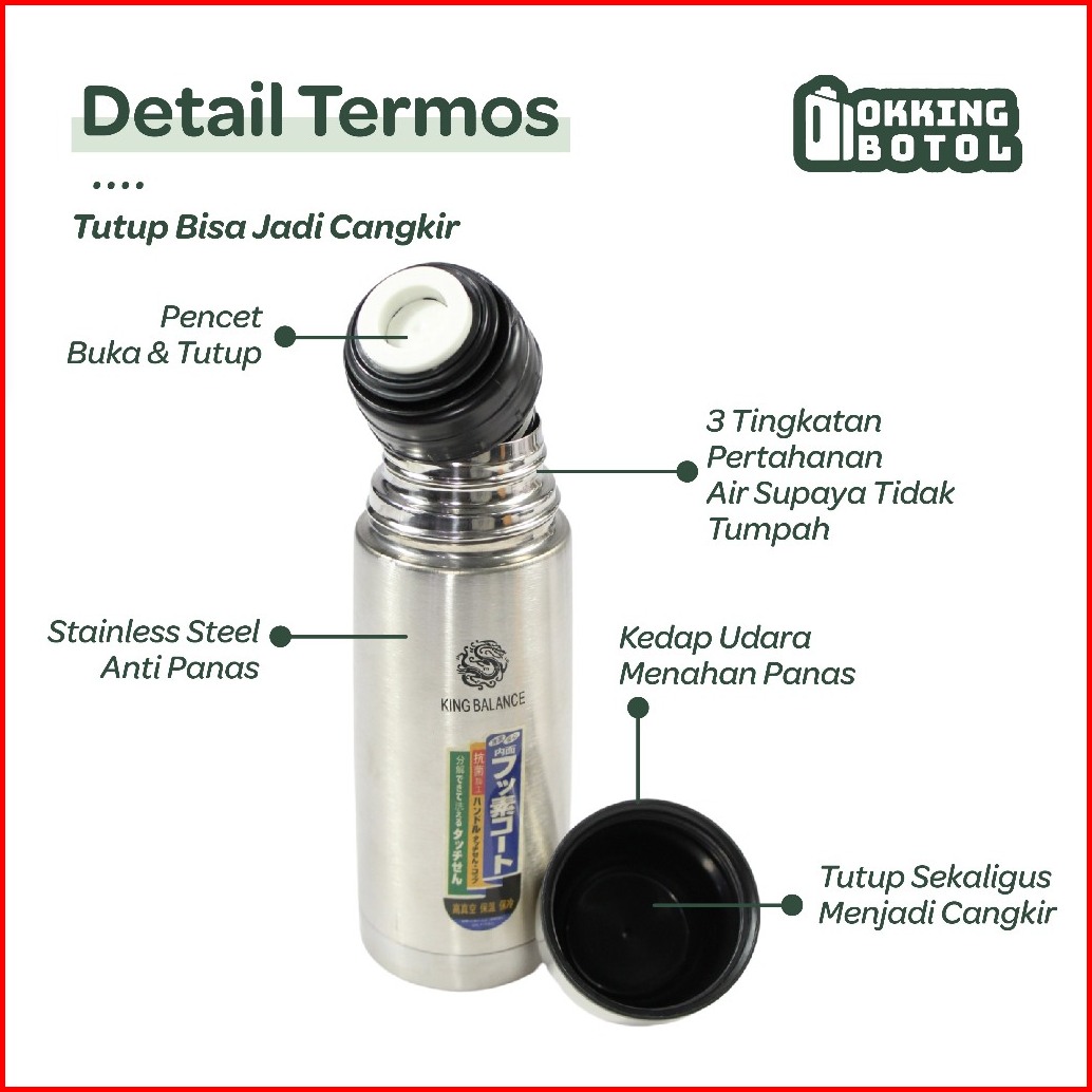 Termos Air Panas Termos Kapsul Stainless Steel 350ml 500ml 750ml 1000ml Free Tas 661