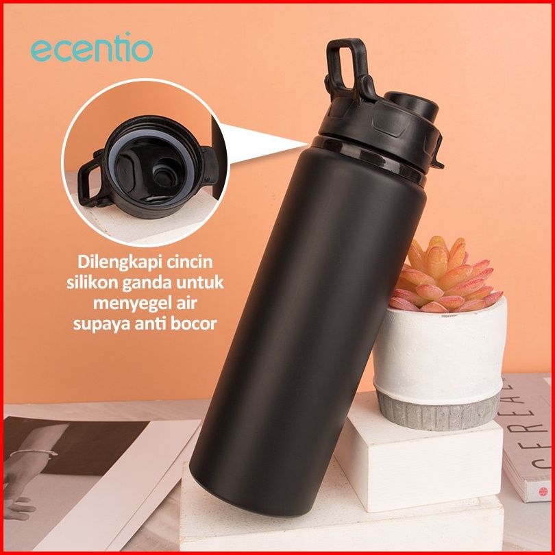 Ecentio Tumbler Botol Minum Aesthetic 750 Ml Aluminium Ringan Sports Olahraga Sepeda Anti Bocor