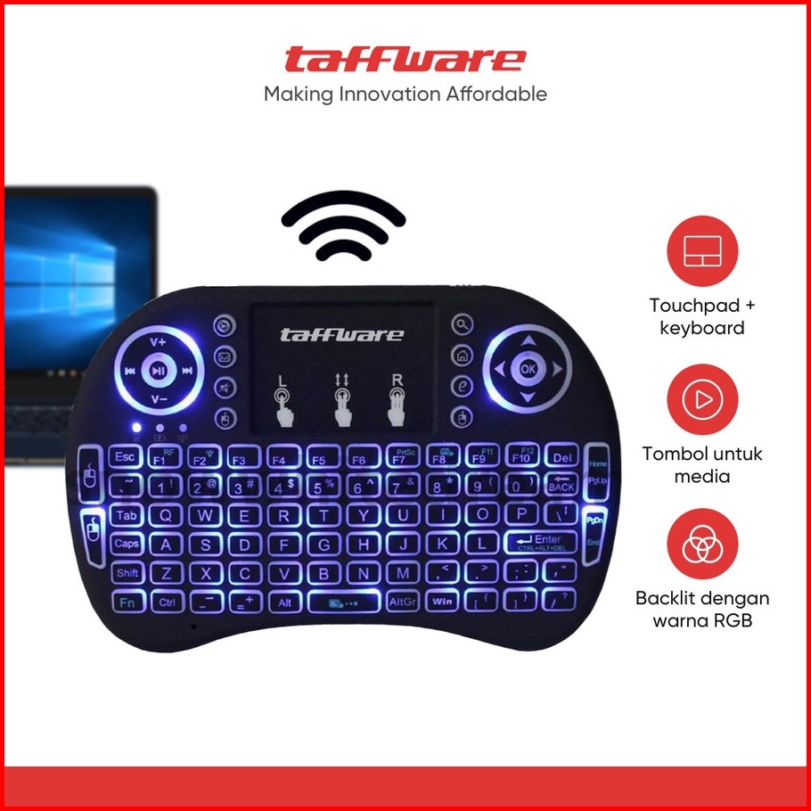 Taffware Air Mouse Wireless Mini Keyboard Rgb 2.4ghz Dengan Touch Pad - I8
