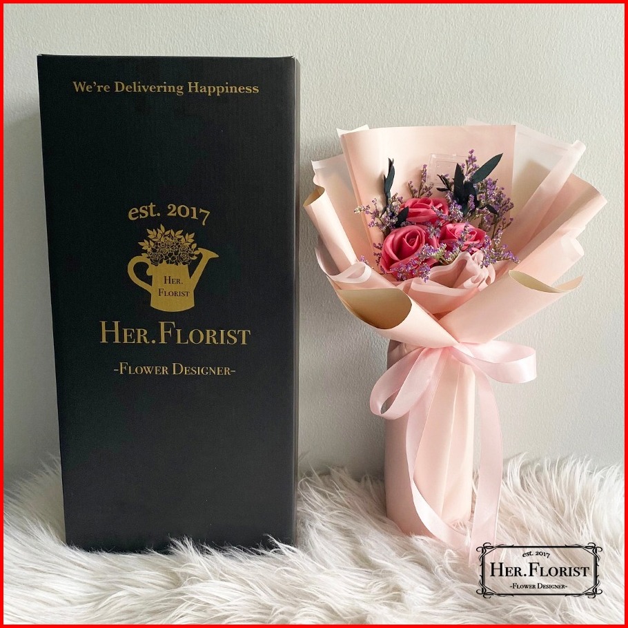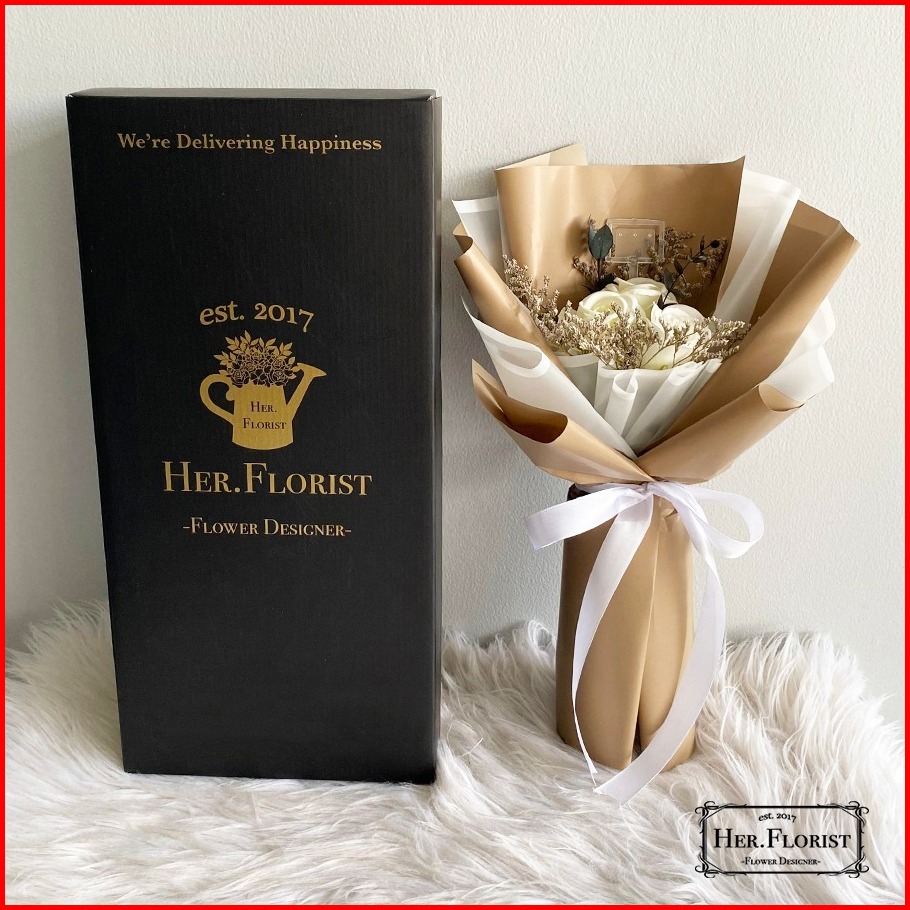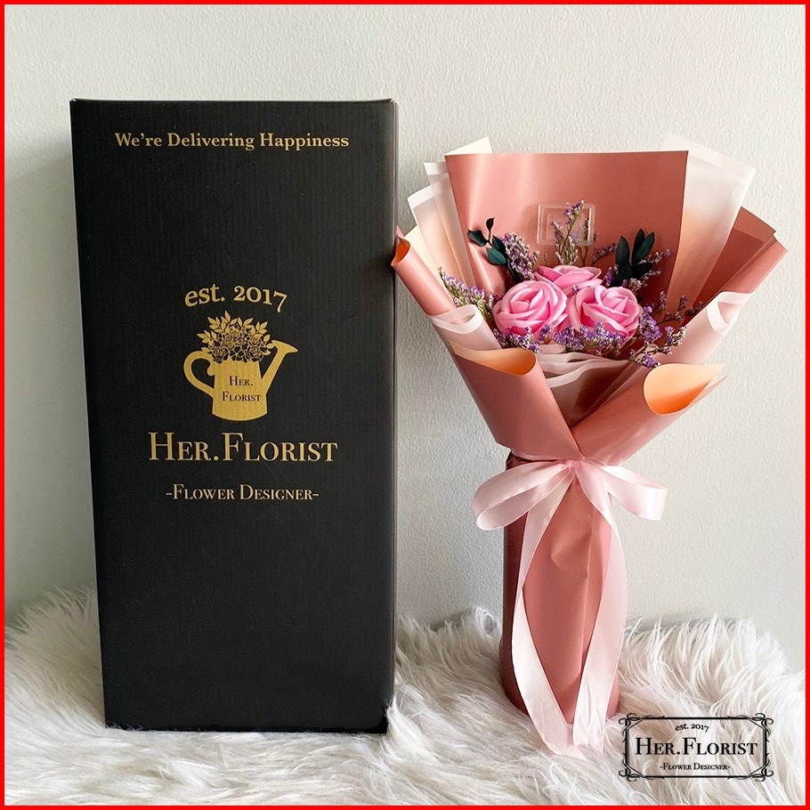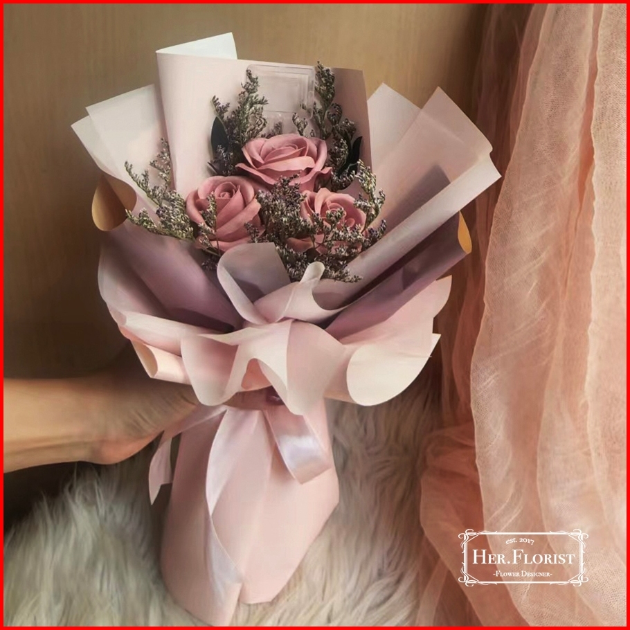 Her.florist Ori Triple Soap And Dried Flowers Bouquet 3pcs Buket Bunga Sabun Dan Bunga Kering