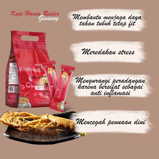 Kopi Hania Realco Ginseng HNI BPOM , Kopi Hania Ginseng + Gula Aren Dan Kolagen HNI