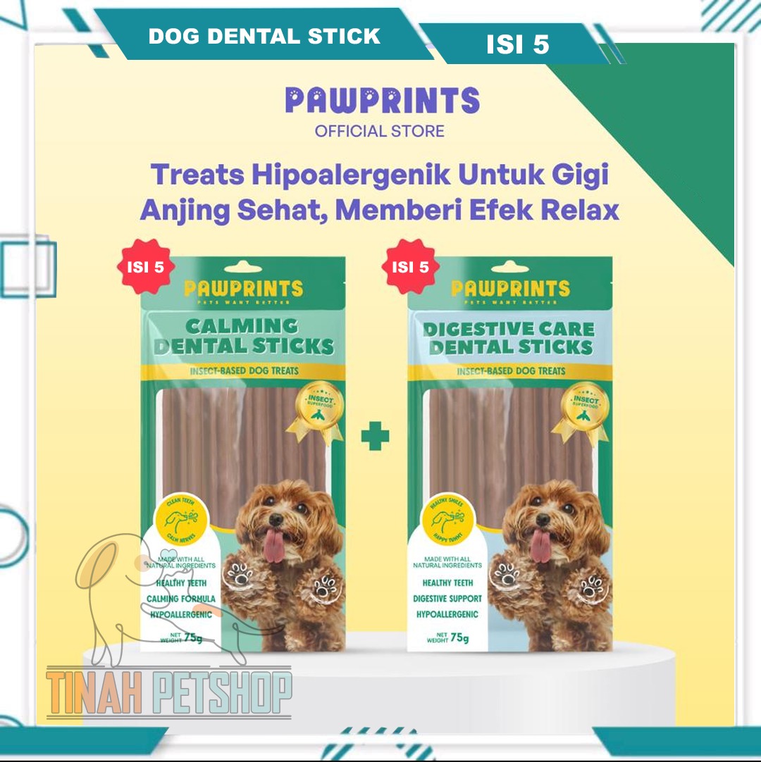 PAWPRINTS Anjing Dog Dental Treats 75g - Calming Care / Digestive Care | Gigi Sehat, Tenang, Pencernaan, Hypoalergenik -
