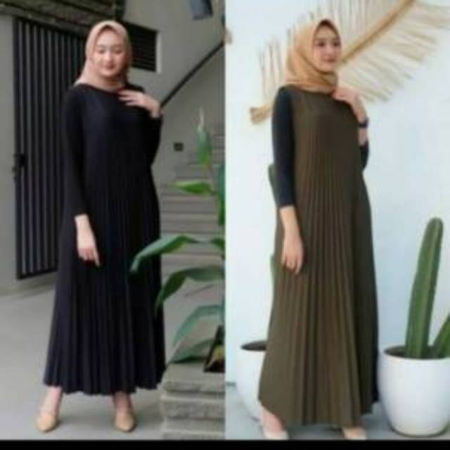 DRESS PLISKET / LONG DRESS PLISKET /GAMIS PLISKET WANITA/DRESS PLISKET TANPA LE⁹NGAN