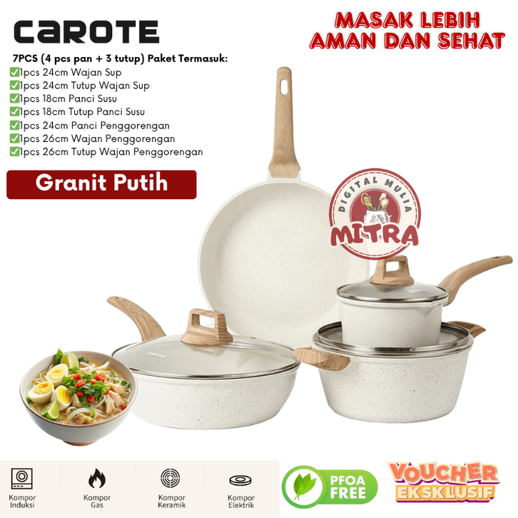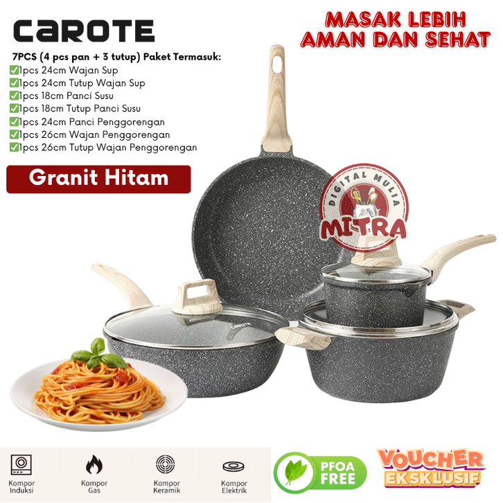 Wajan Anti Lengket Carote Official Store Penggorengan Teflon 7 PCS Panci Set Lengkap Serbaguna Lapisan Granit