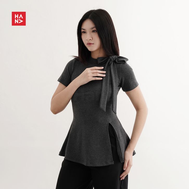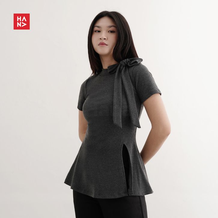 Baju Wanita Hana Fashion - Dunesa Top/Atasan Fit Wanita Ribbon/Top Rajut Pita - TS722