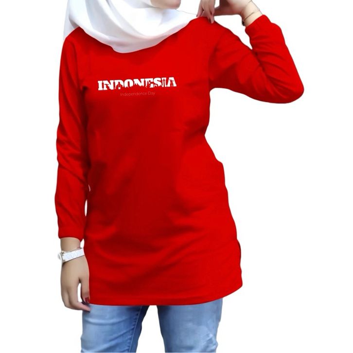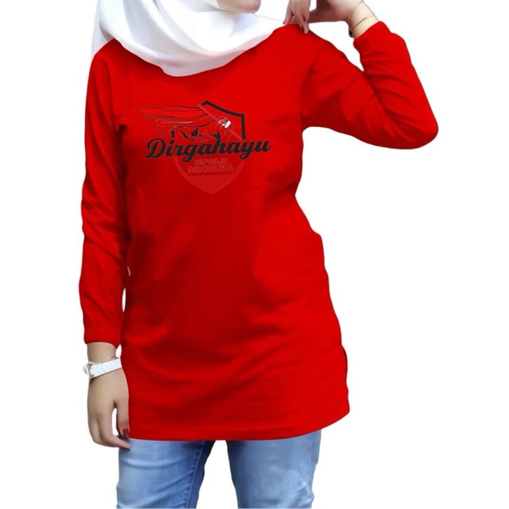 KAOS OVERSIZE ATASAN WANITA KEKINIAN LENGAN PANJANG MERAH CABE MOTIF 17 AGUSTUSAN