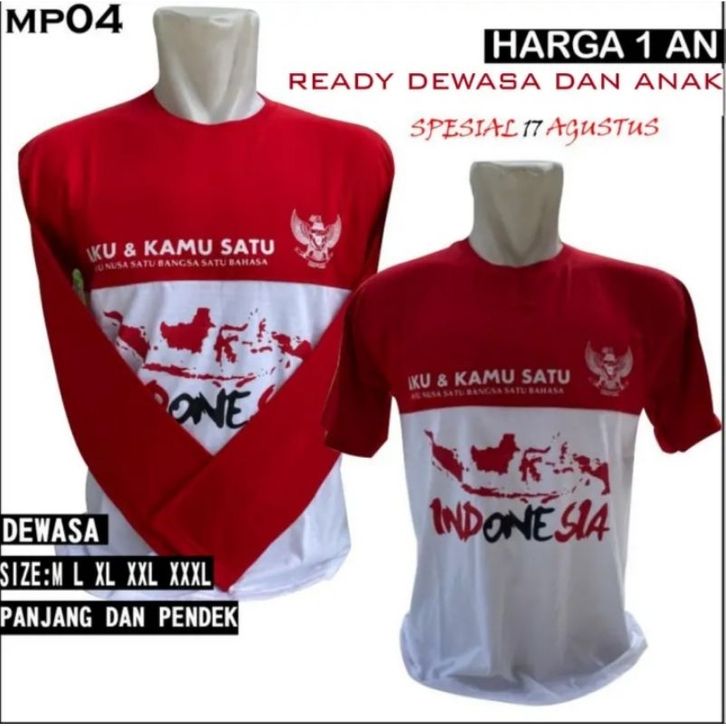 KAOS INDONESIA MERAH PUTIH 17 AGUSTUS Dewasa DAN Anak Size M L XL XXL XXXL Bahan Katun 24s Distro Sablon Pria Oblong