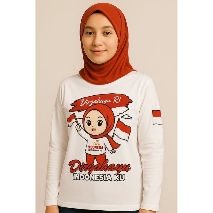 Lengan Panjang Wanita Hut Jilbab RI 80 Kaos Terlaris 17 Agustus 1945 Kemerdekaan Indonesia Kaos Merah Putih Hitam Kaos