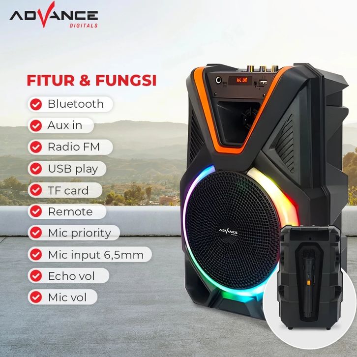 Advance KS821 Speaker Bluetooth Karaoke Super Full Bass Aktif BONUS 2 Pcs Mic Wireless