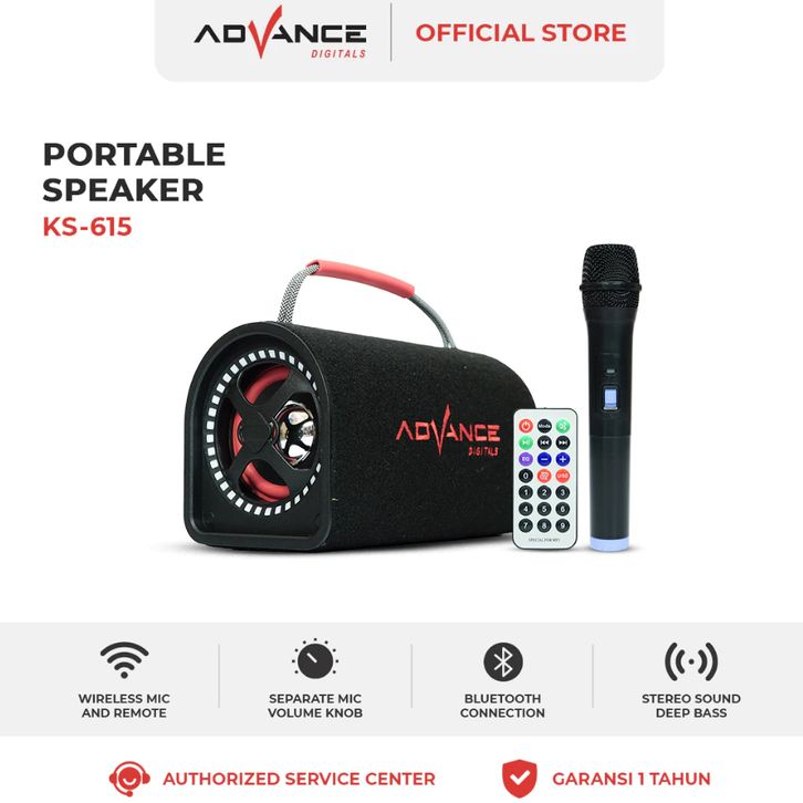Advance KS615 Speaker Bluetooth Karaoke Super Full Bass Wireless Portable Aktif BONUS Mic Wireless