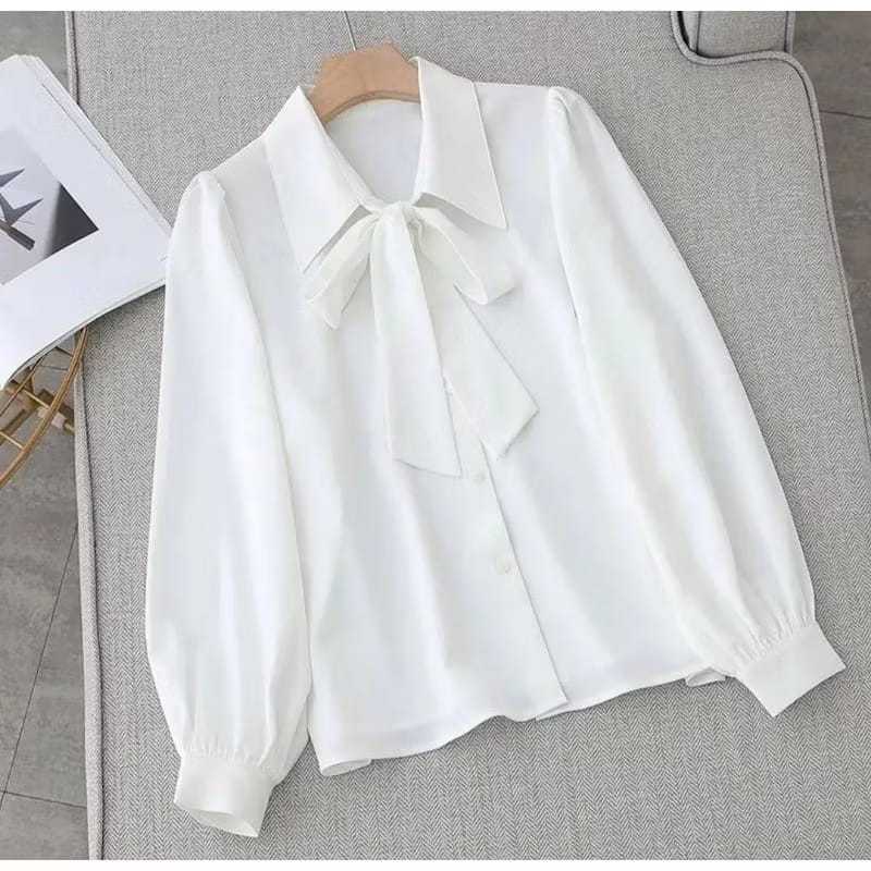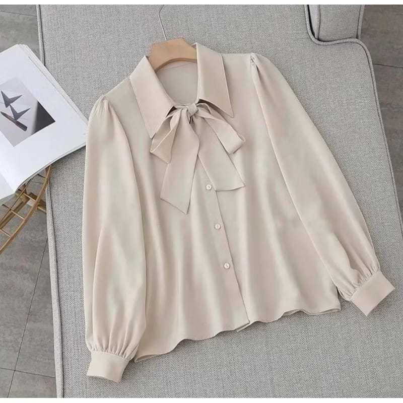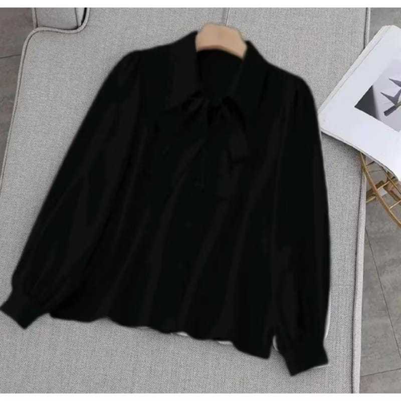 Kemeja Wanita Korean Style Gangnam Top Blouse POLY MICRO Kerah Pita