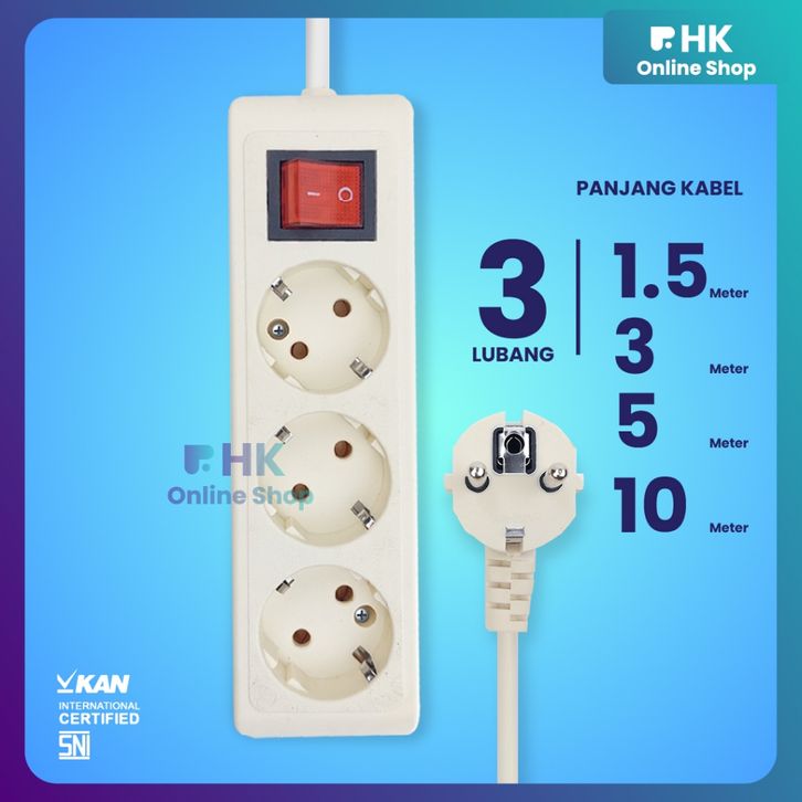 Stop Kontak Kabel 2/3/4/ 5 Lubang 1.5M/3M/5M Meter Colokan Listrik Berkualitas Ber SNI