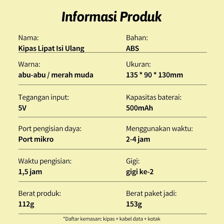 Kipas mini Angin portable KV FA72 lipat fan cute 2 Speed 2 warna Micro USB garansi 1 tahun