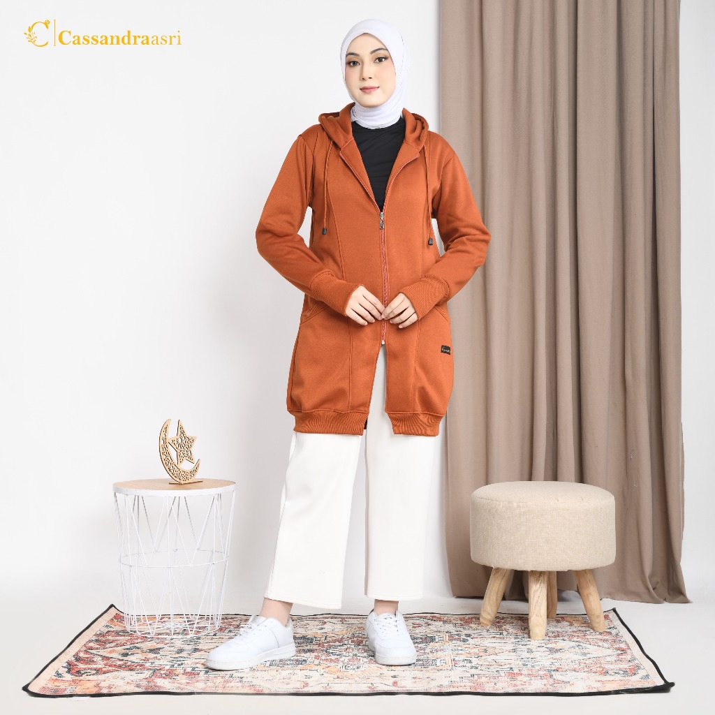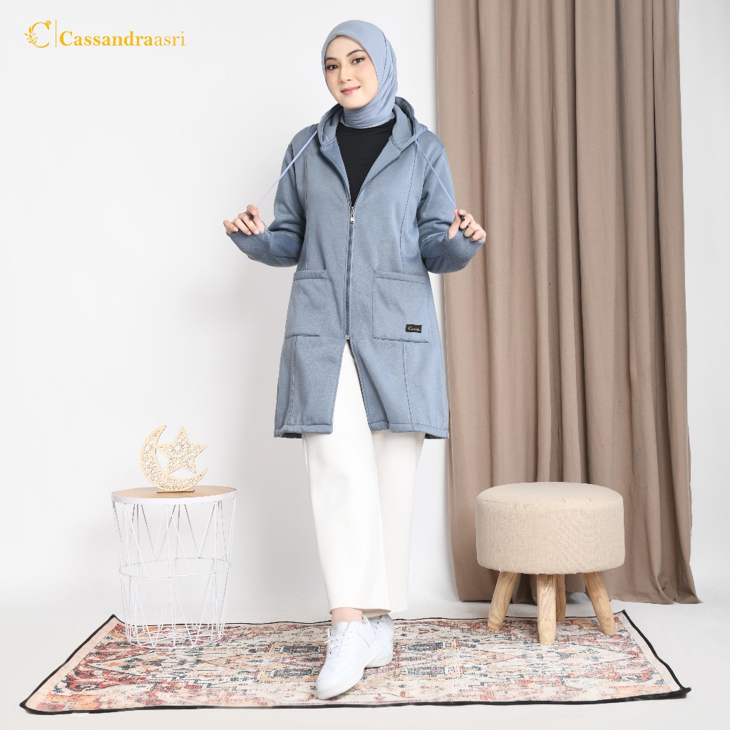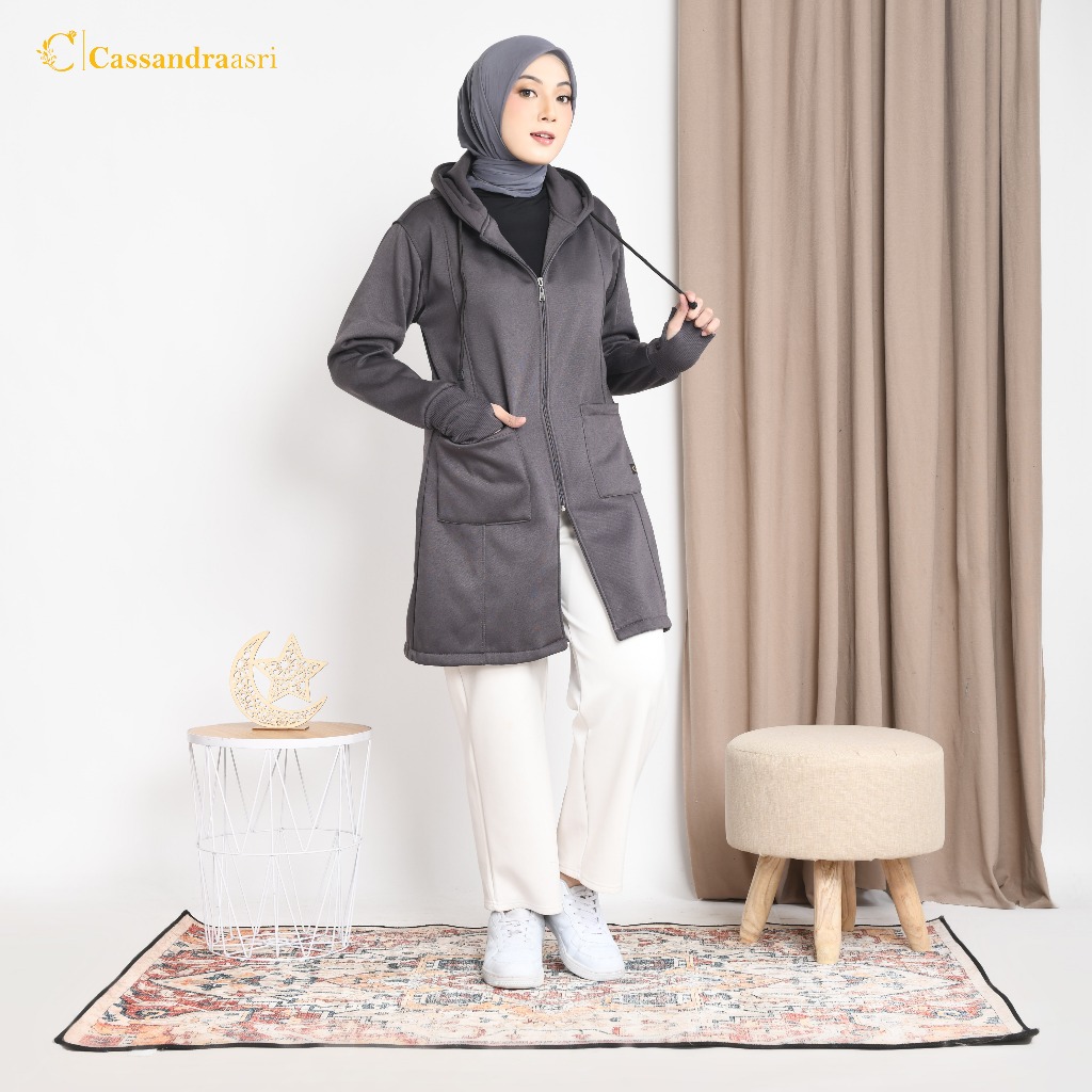 Cassandraasri - Jaket Muslimah Fleece Premium - Jakat Hijab Panjang Syar'i - Jaket Hijaber Terlaris