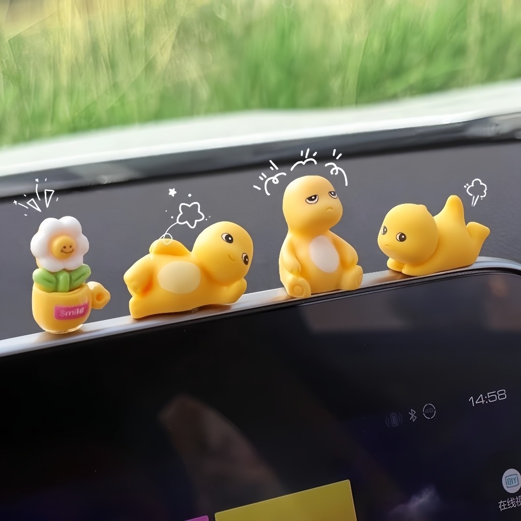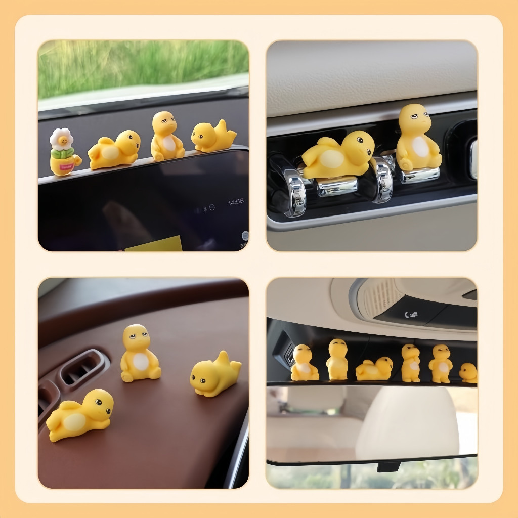 Mini Figure Nailong Dino Kuning Original Lucu Dekorasi Mobil Dasbor Mainan Pajangan Ornamen Naga Susu 6Pcs Kirim Lem