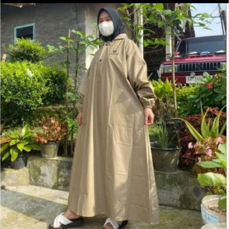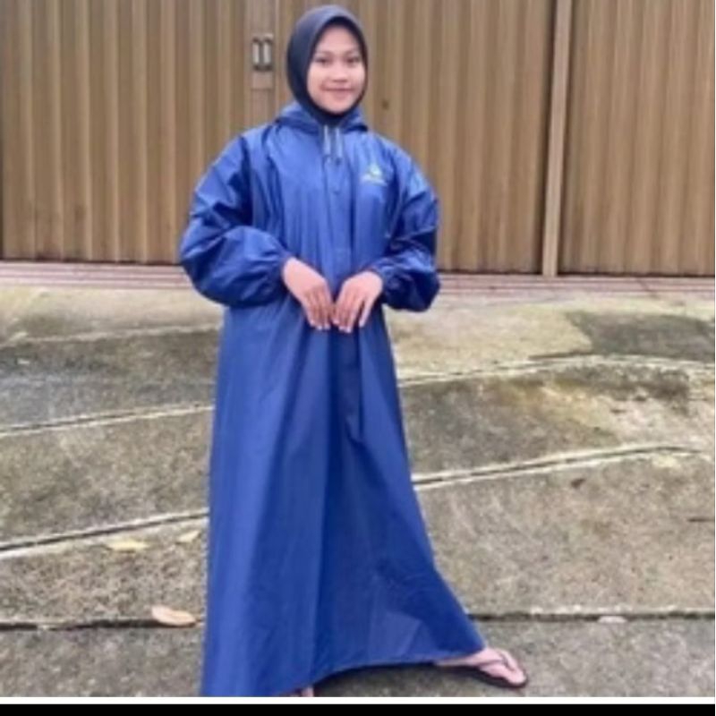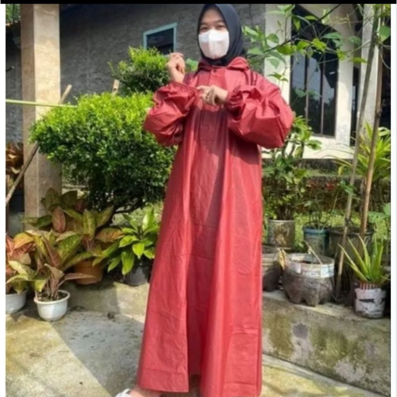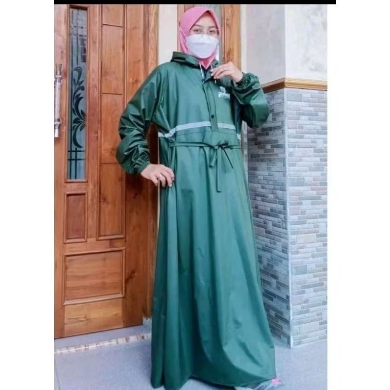 Jas Hujan Gamis Muslimah Anti Rembes Bahan PVC Tebal Kuat Lentur Elastis