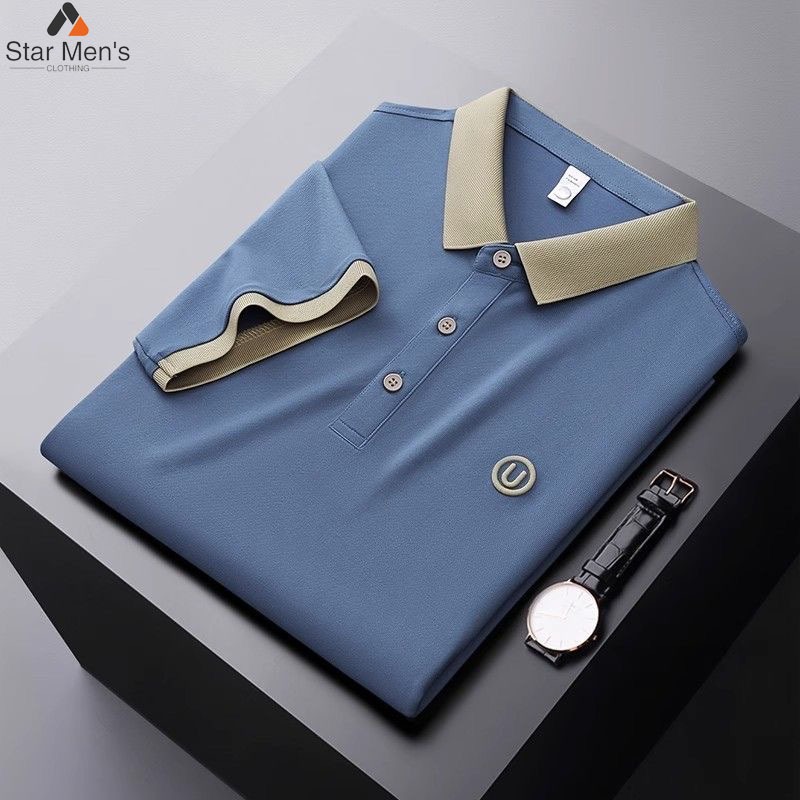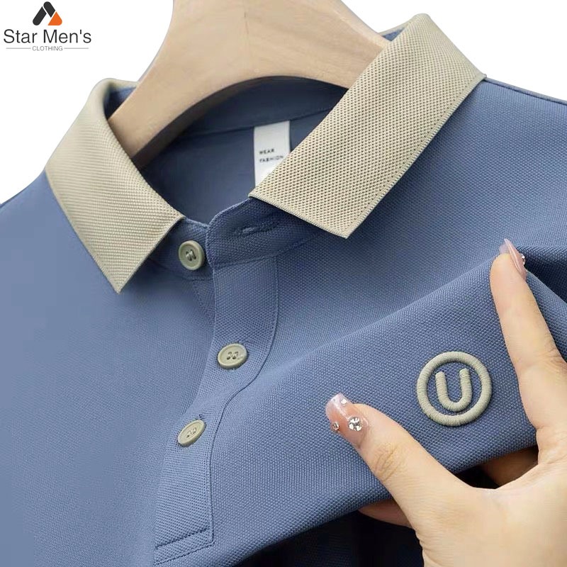 Kaos Polo Pria V Neck Kemeja Pria Lengan Pendek Polo Shirt Kaos Kerah Pria dewasa Blue Lengan Pendek Polos Kemeja casual Terlaris