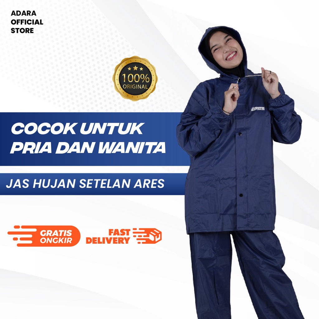 Setelan Jas Hujan Parasut 025 Ares Raincoat Laki Laki Dan Wanita Bahan Premium
