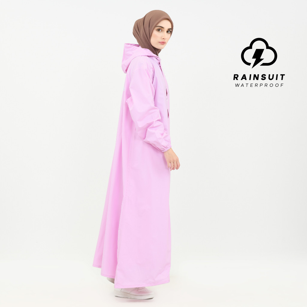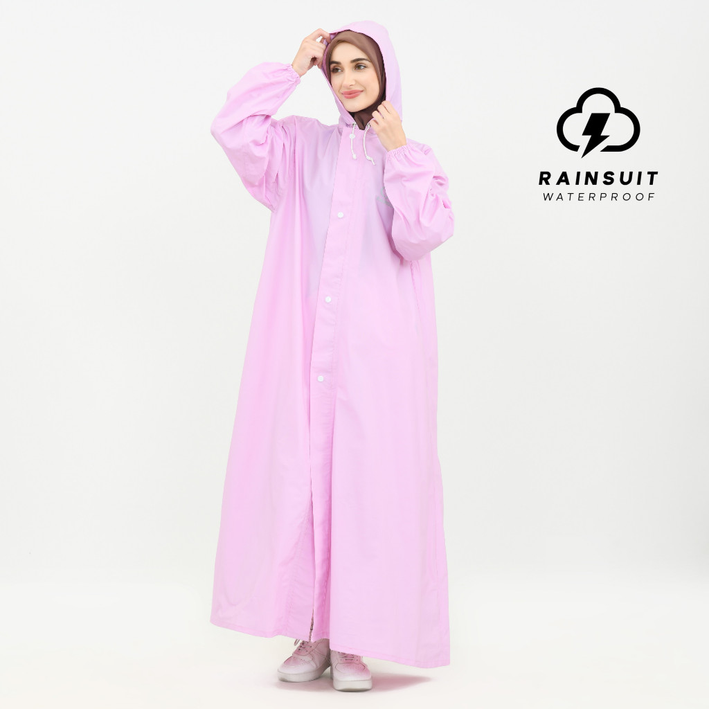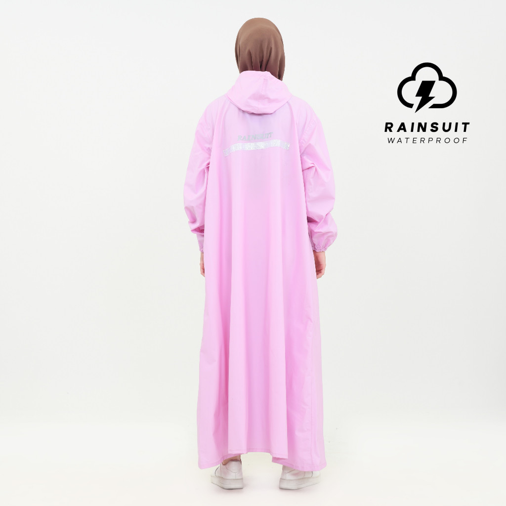 RAINSUIT Jas Hujan Gamis Muslimah Hijab Syar'i Bahan PVC Tebal Anti Bocor Warna Baby Pink