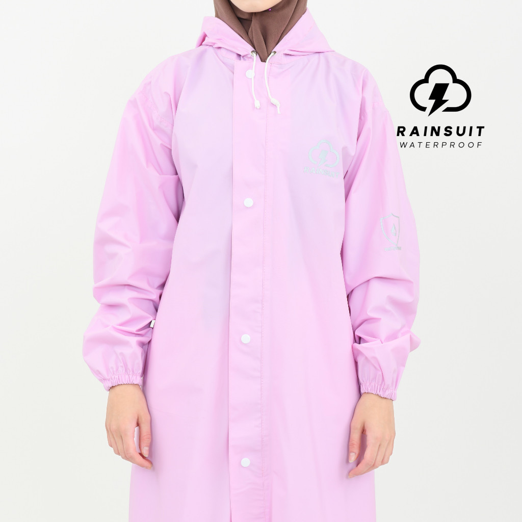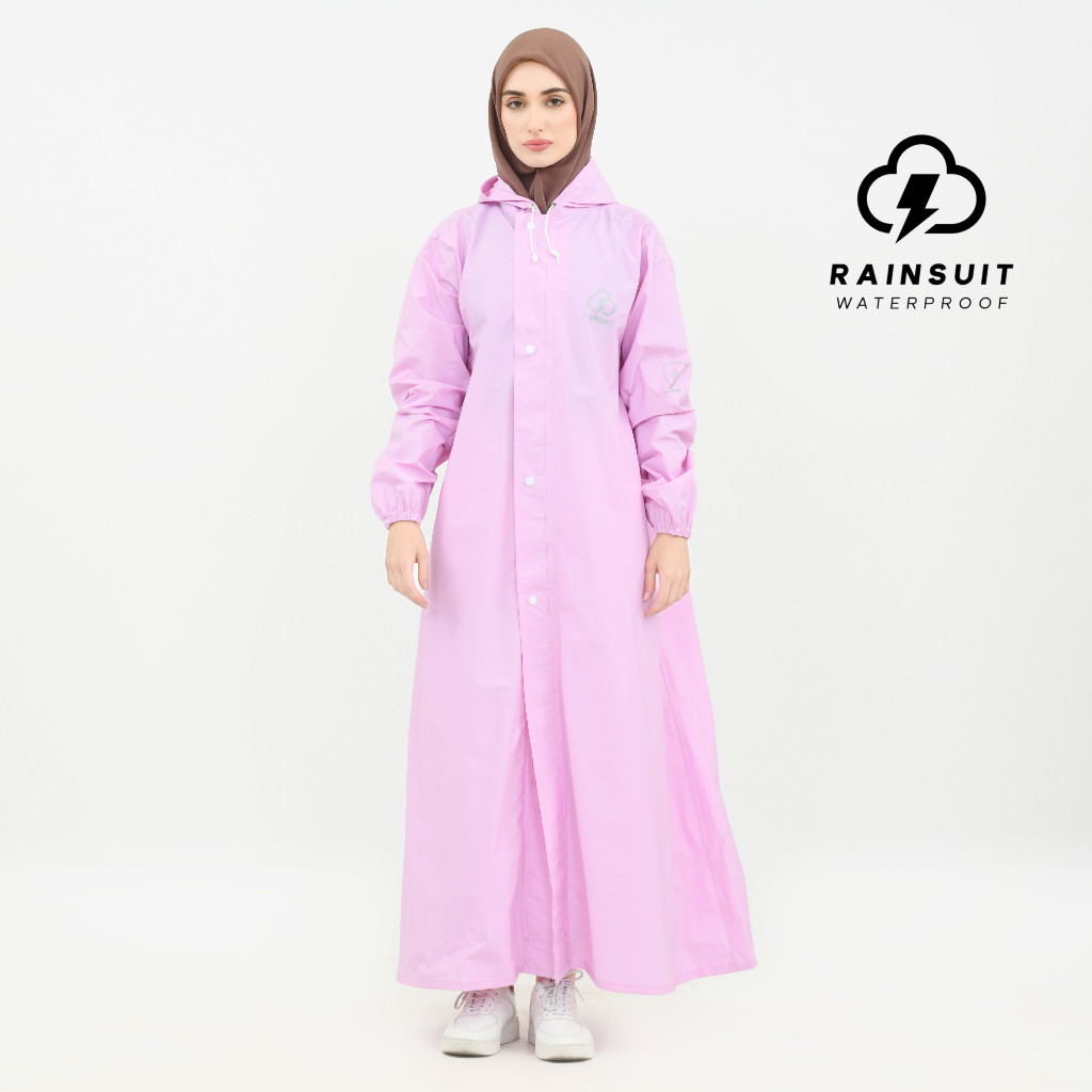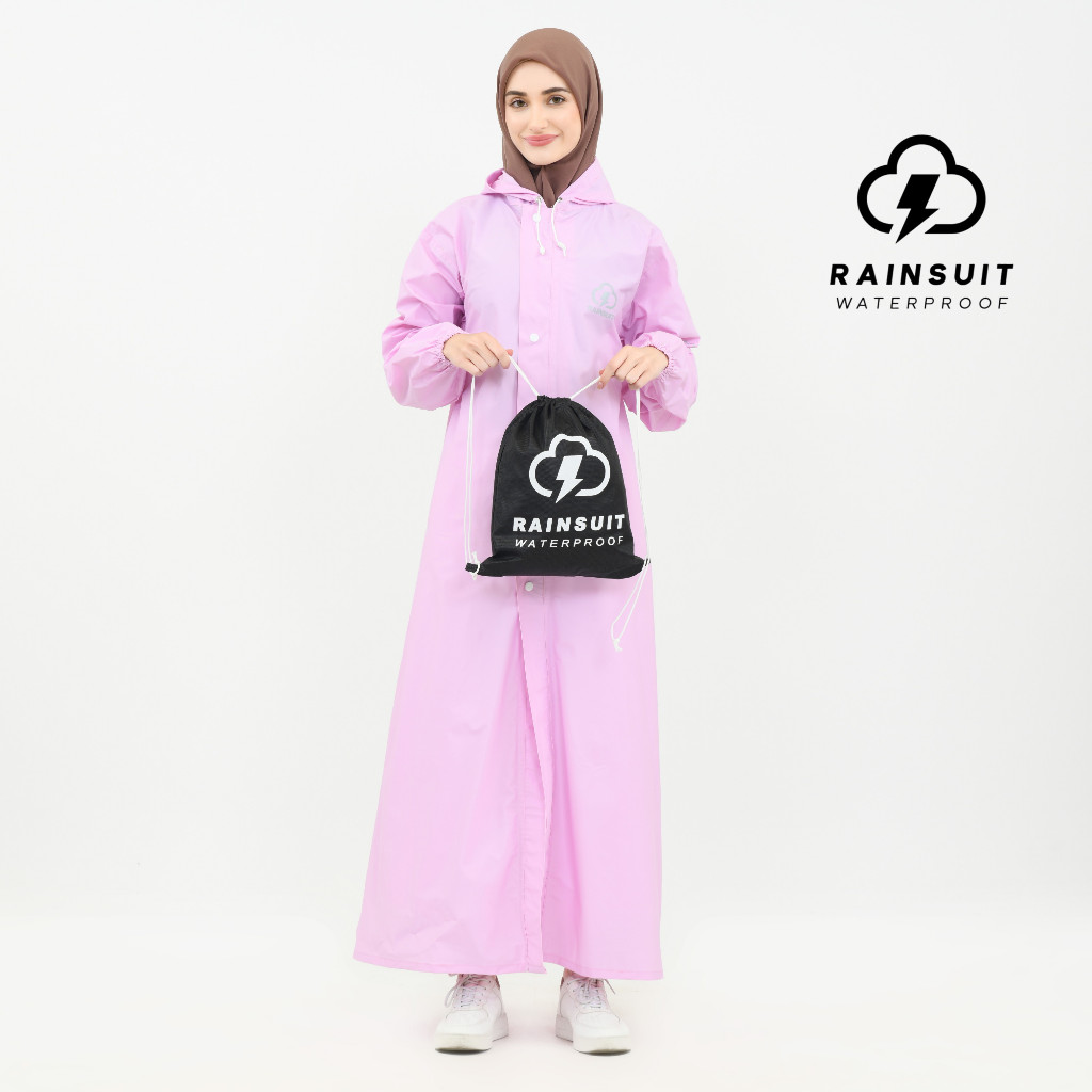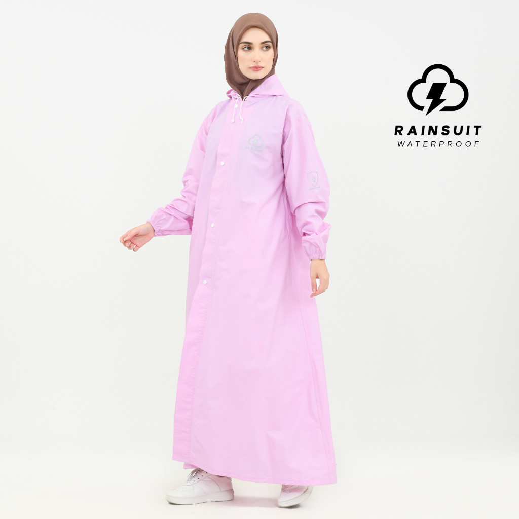 RAINSUIT Jas Hujan Gamis Muslimah Hijab Syar'i Bahan PVC Tebal Anti Bocor Warna Baby Pink