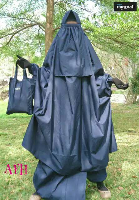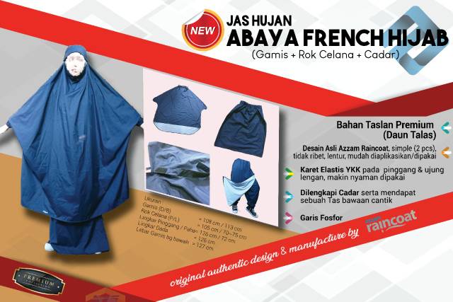 Jas Hujan Muslimah Wanita Syari Abaya French Hijab Bahan Taslan Premium Azzam Raincoat