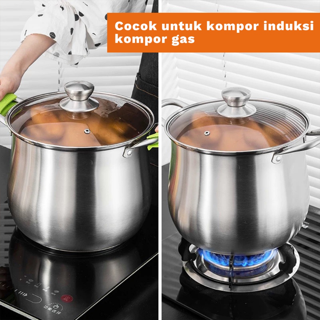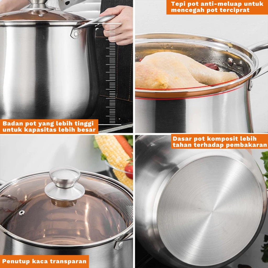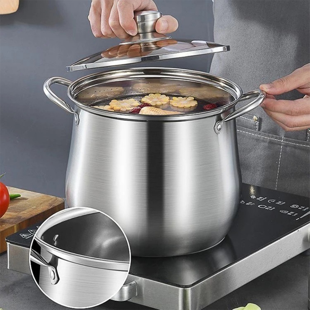 COOKHEN PANCI STAINLESS STEEL 22CM/24CM – UNTUK SOUP BAKSO MI DENGAN TUTUP KACA PANCI KALDU【】