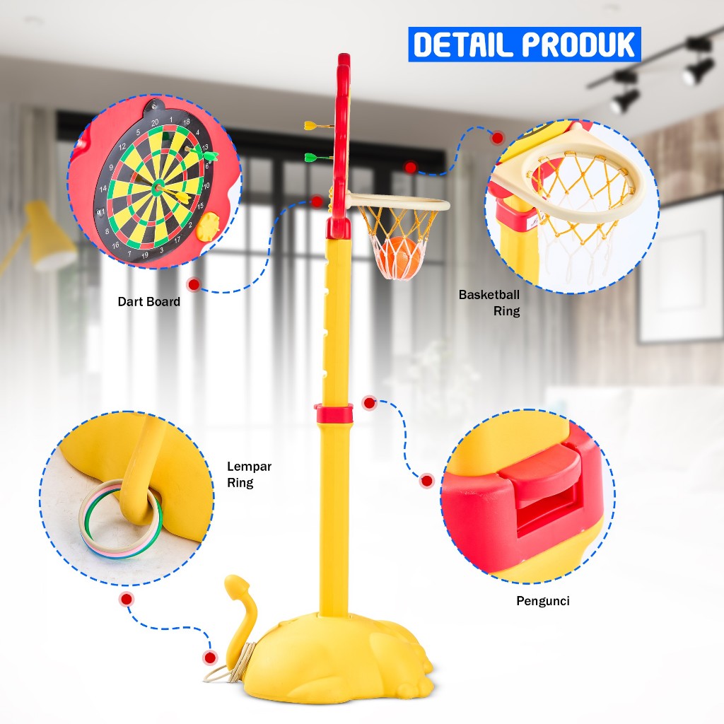 Toys Mainan Anak Basketball Set Anak Ring Bola Basket Adjustable Height Bonus Dart