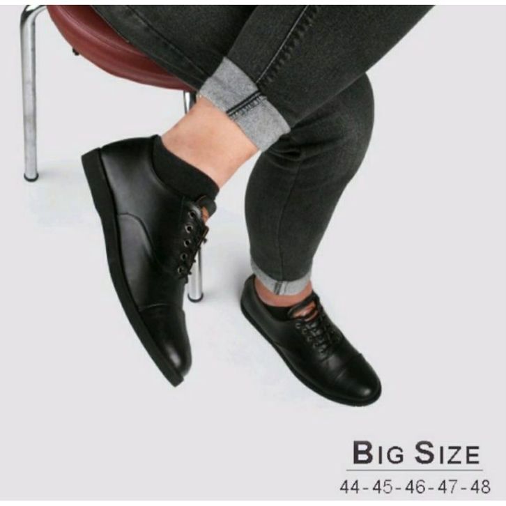 Bisa / Sepatu Pantofel Pria Big Size 44-48 BRK-1 Jumbo Ukuran Besar Kulit, Hitam 47