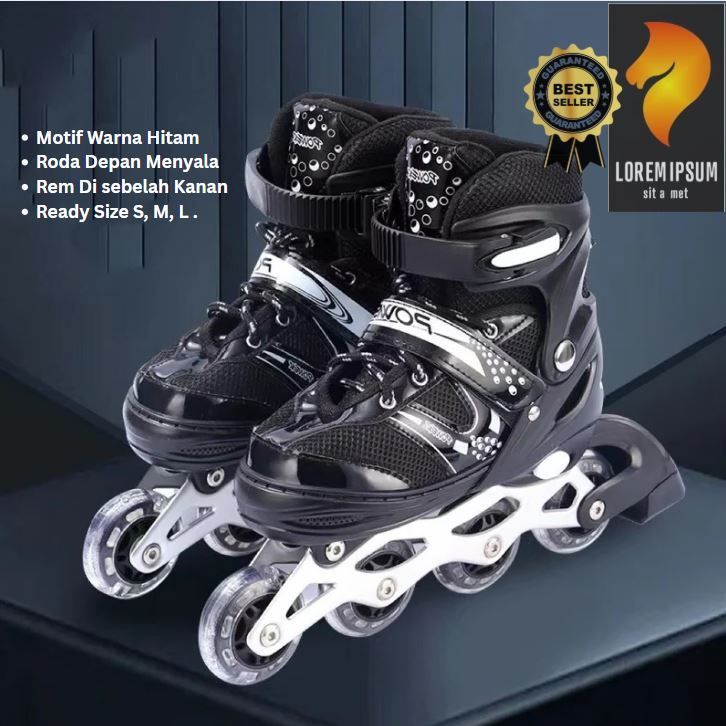 Skate Inline Sepatu Roda Hitam Anti Selip PU Terbaru Skate Inline Roda Depan Menyala LED