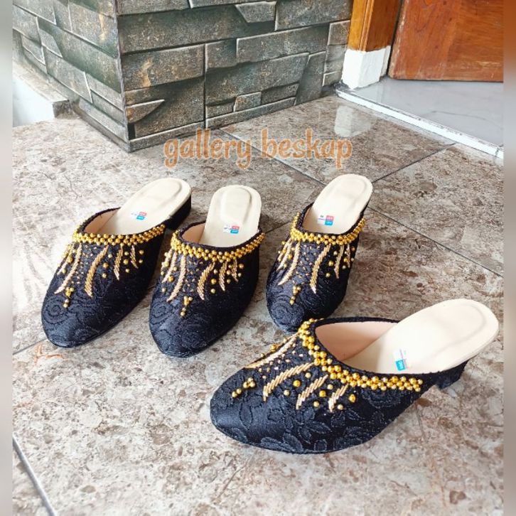 ORIGINAL Sendal selop pengantin warna hitam payet gold / selop manten inoks