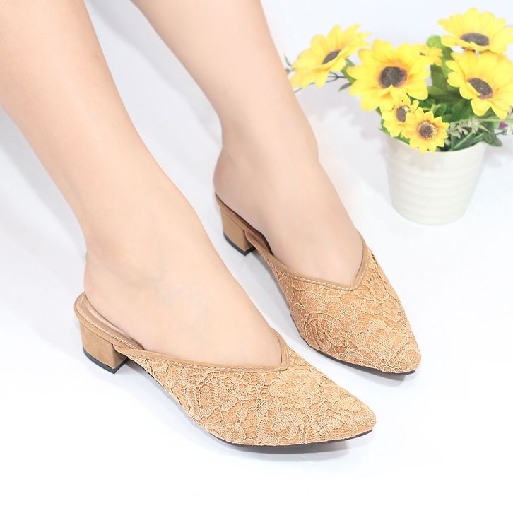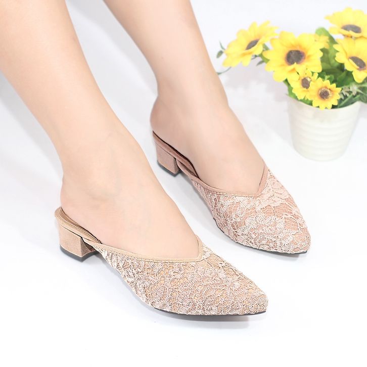 TERBARU sepatu sandal selop pengantin wanita hak 3 cm bahan brukat premium ibehmn