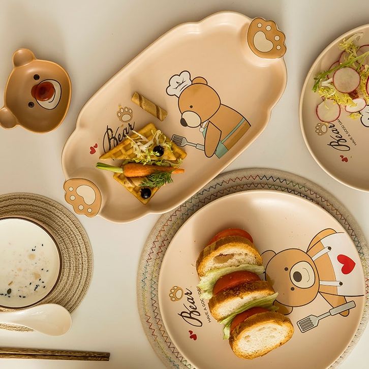 Brown Bear Dining Set - Piring Mangkuk Cangkir Tray Makan Saji Keramik / Motif Beruang Lucu