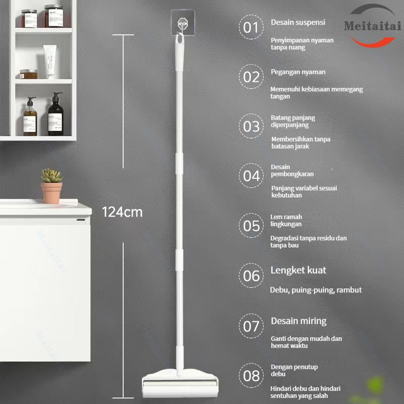 pel rol pembersih Bulu hewan peliharaan debu panjang pegangan yang dapat disesuaikan 25-124cm roller penghilang debu Bai
