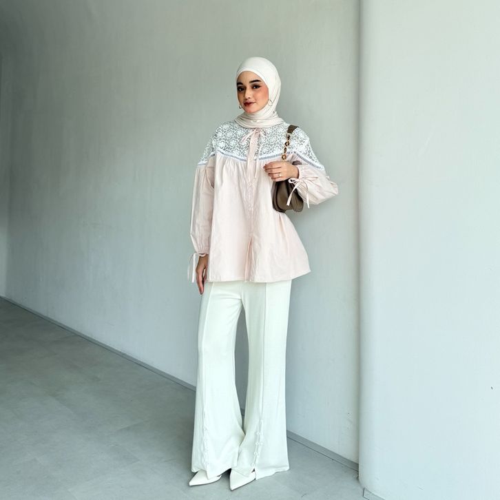 Grosir FEBIOLA by Yellowfacy | Kode 1823 Baju Atasan Wanita Katun Poplin Kemeja Shirt Lace Casual Bigsize Keren
