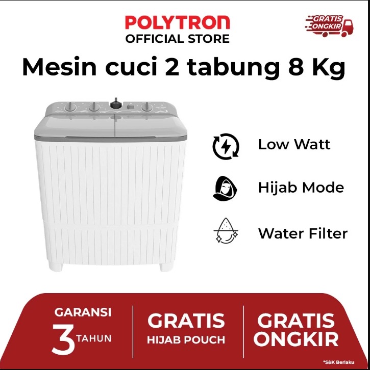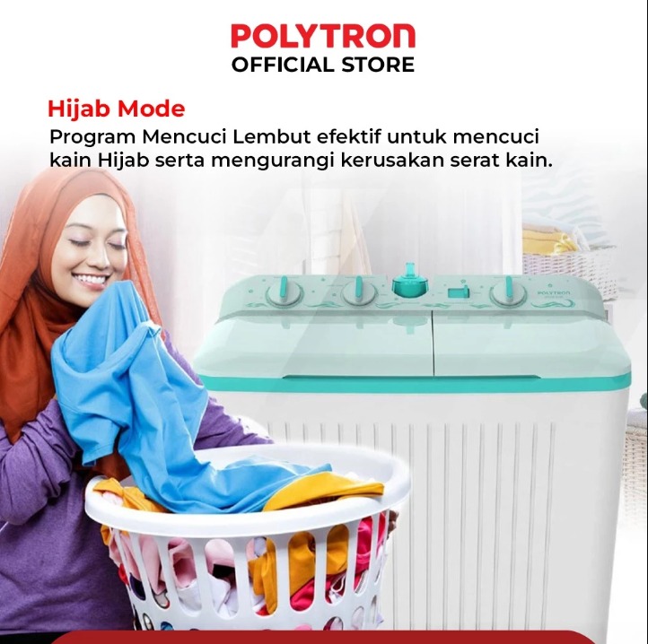 POLYTRON Mesin Cuci 2 Tabung Giant Series Hijab 8 KG - PWM 8076Y