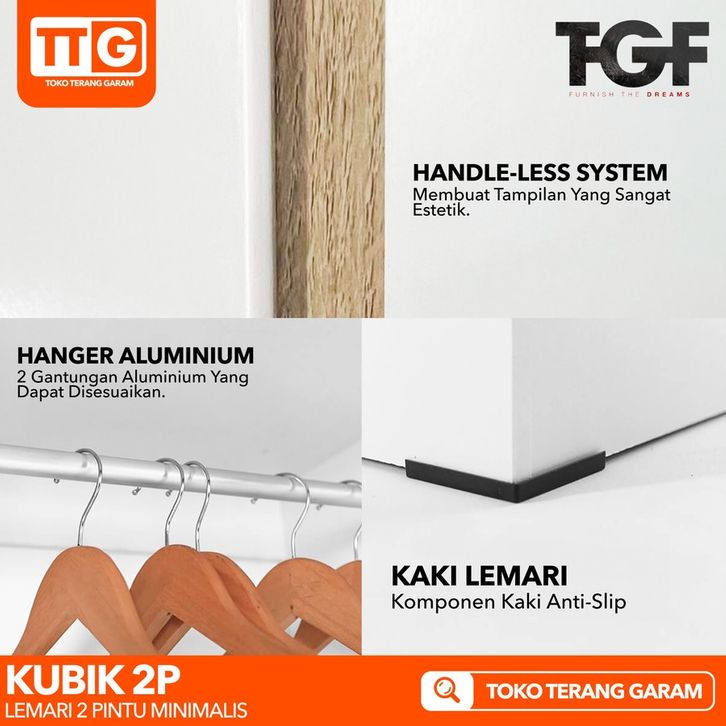 TGF Lemari Pakaian / Baju 2 Pintu Minimalis 2 Gantungan Gamis KUBIK 2P