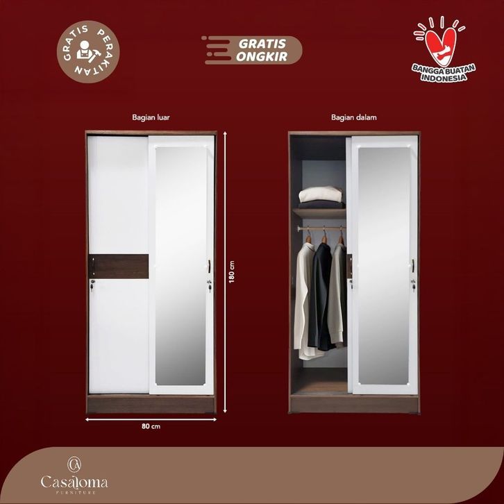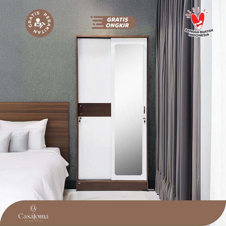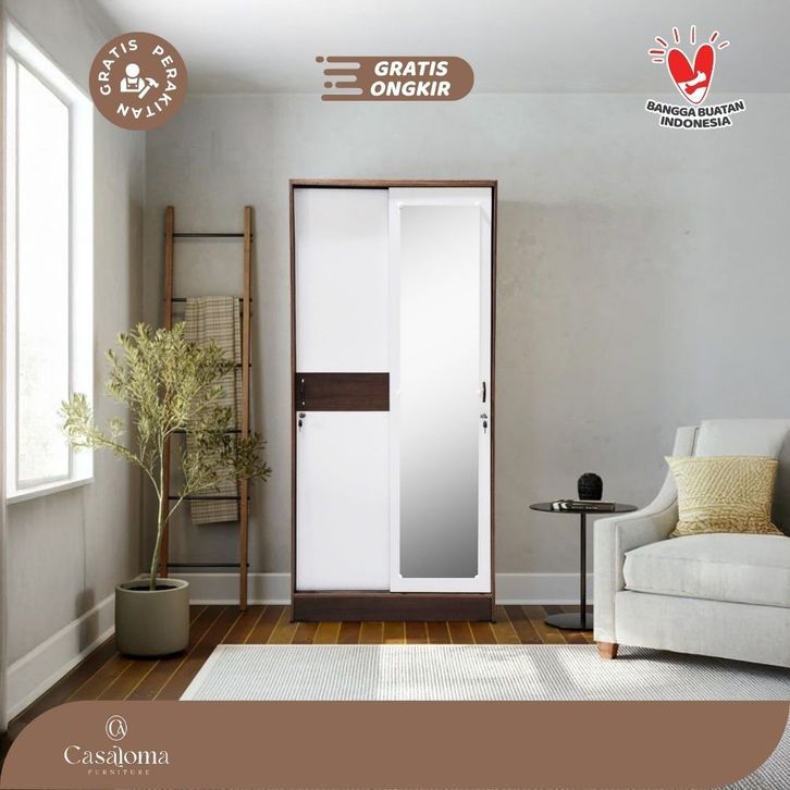 Casaloma Furniture Lemari Pakaian 2 Pintu Sliding Japandi