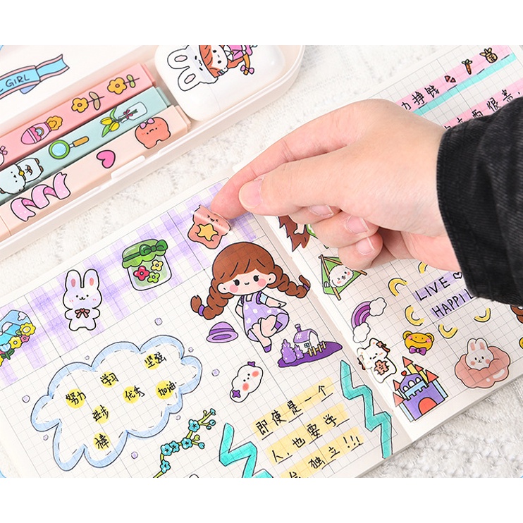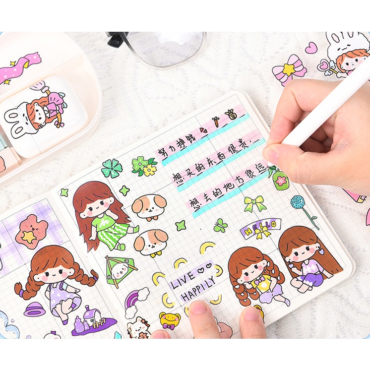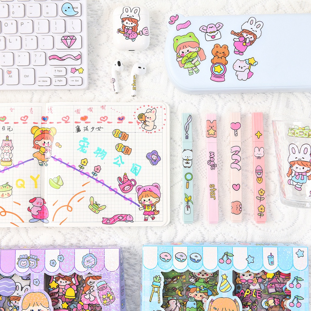 Ellie Stiker Korea Isi 100 Pcs Sticker Deco Aesthetic / Bujo /Scrapbook Momo Girl Sticker Tumbler / Binder / Case Hp / D