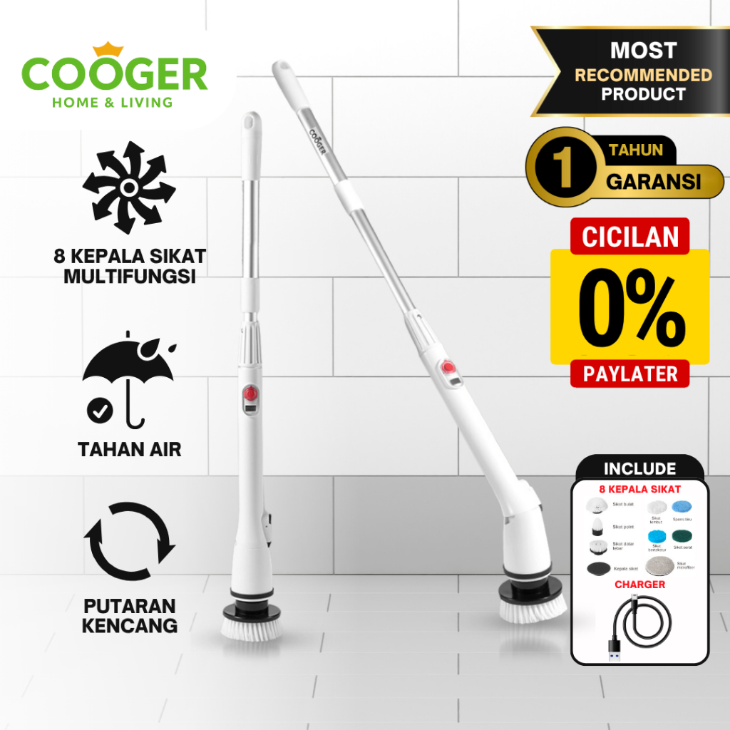 COOGER Homeliving Sikat 8in1 Elektrik Waterproof Pembersih Lantai Karpet Kasur 420 Rpm Tahan Air IPX 5 Baterai Tahan Lam