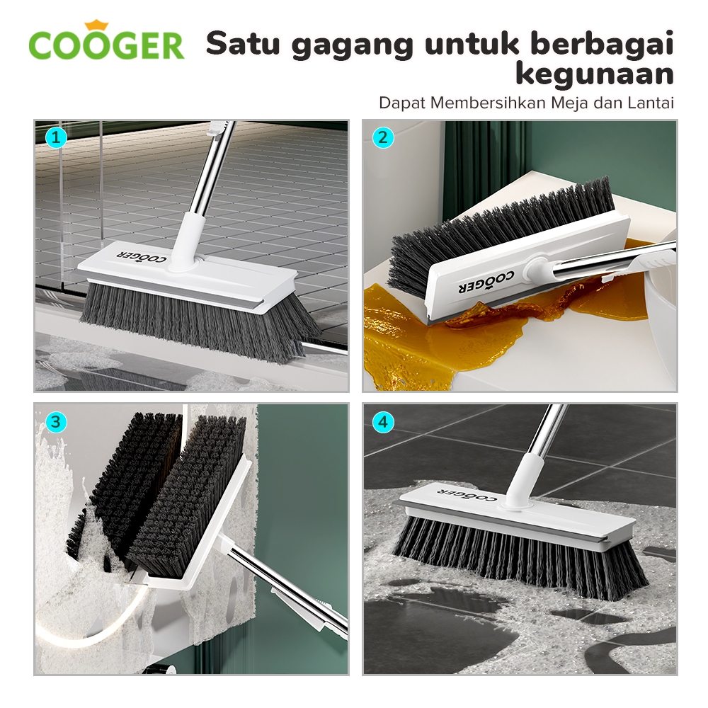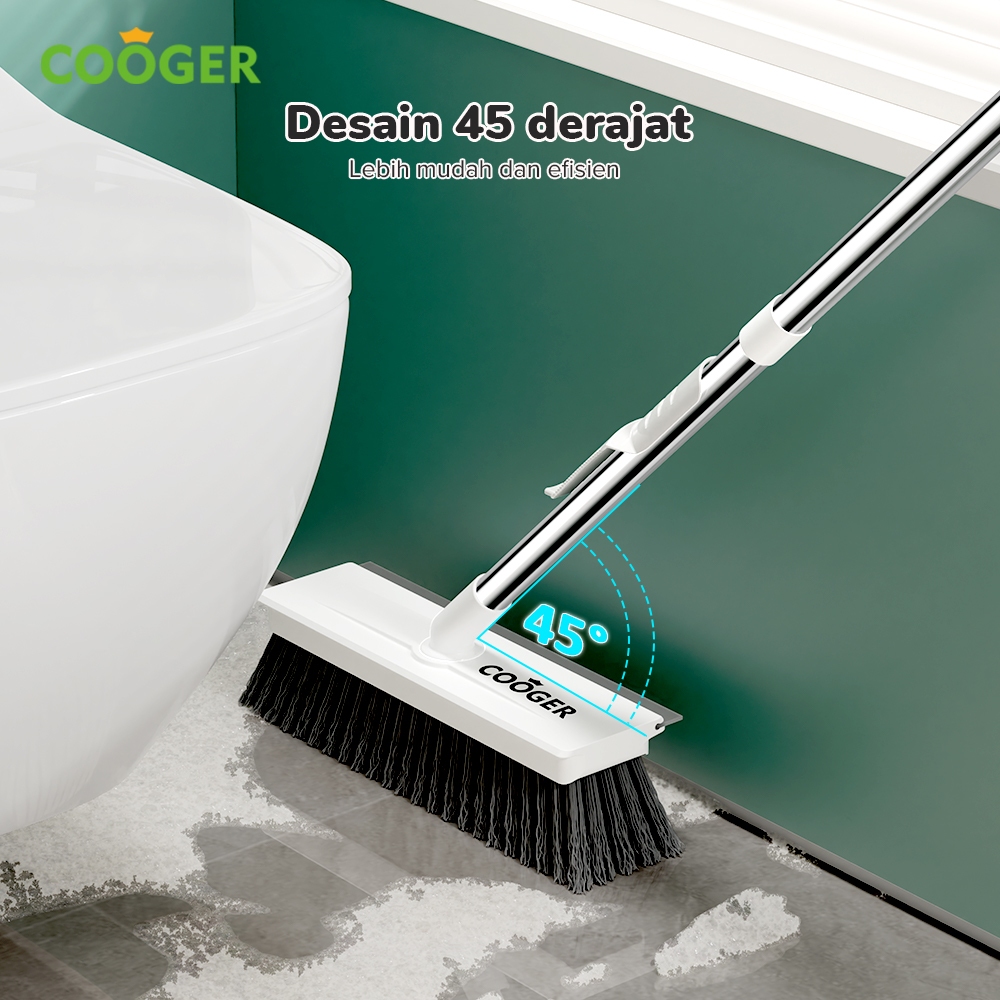 COOGER Sikat Karpet & Sikat Lantai 2in1 - Dengan Serokan Air, Sikat Dorong Gagang Panjang, Sikat Kamar Mandi, Sikat Toil