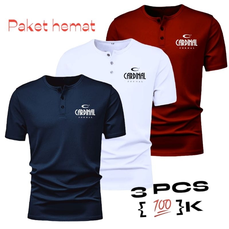 PAKET HEMAT 3 PCS KAOS SABLON /KAOS KANCING PRIA LENGAN PENDEK /KAOS LOGO CR /KAOS PRIA /KAOS DISTRO /KAOS