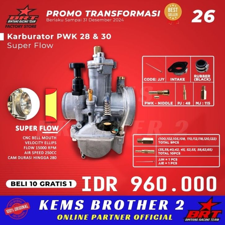 SUPER FLOW BRT KARBURATOR KARBU PWK 28 PWK 30 PWK 32 DAN PWK 34 GENERASI 2