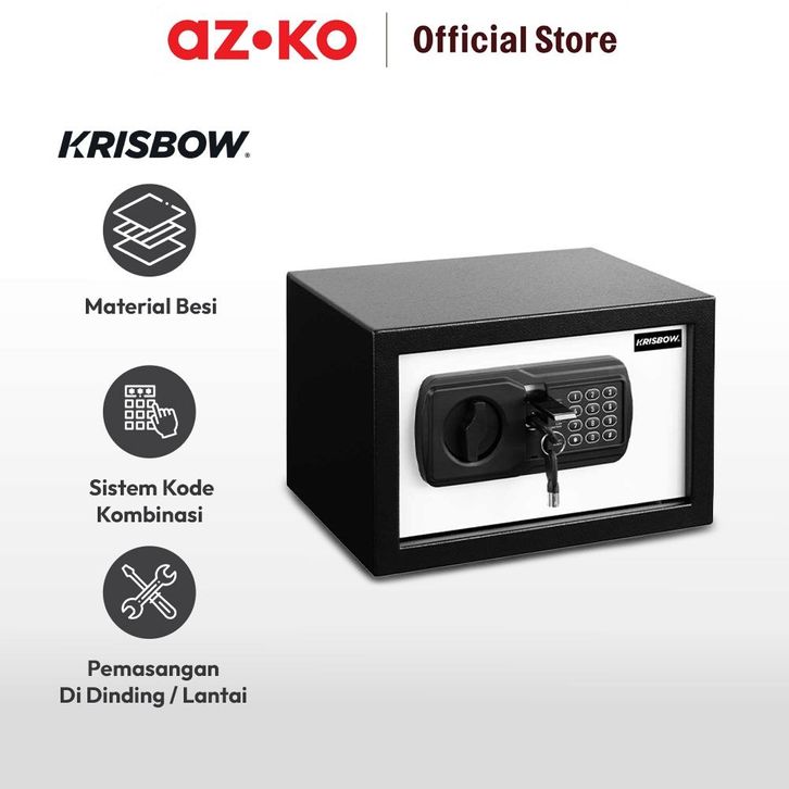 AZKO Krisbow 31x20x20 cm Brankas Besi 1/3 Mm 20nek - Hitam/Putih Lemari Kabinet Besi Brangkas Fire Safe Safety Box