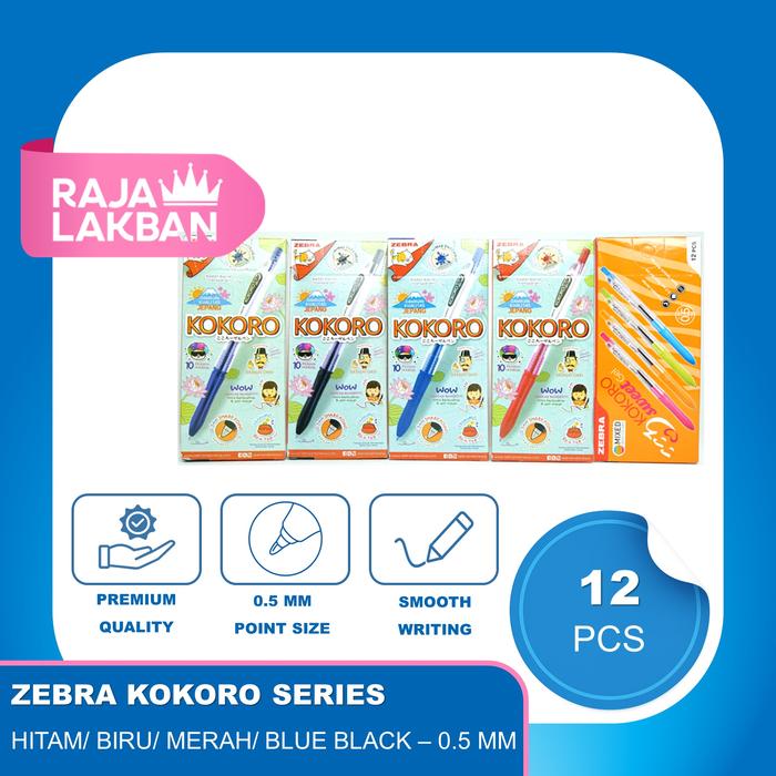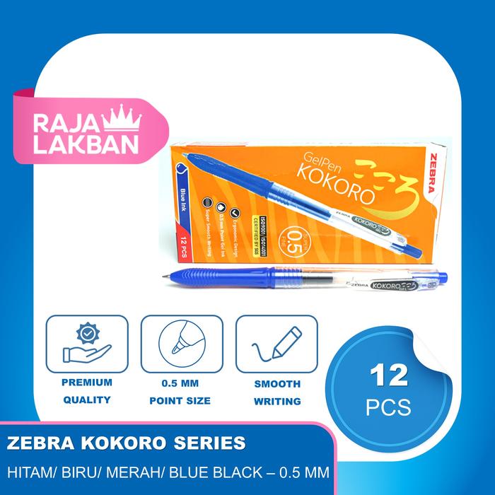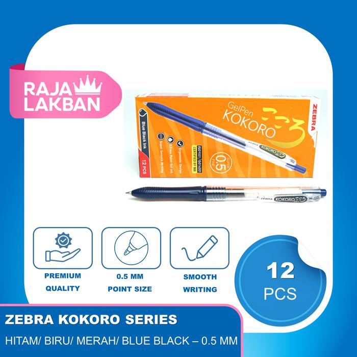 Pulpen Gel ZEBRA KOKORO 0.5 mm Warna Warni - LUSIN - KOKORO HITAM