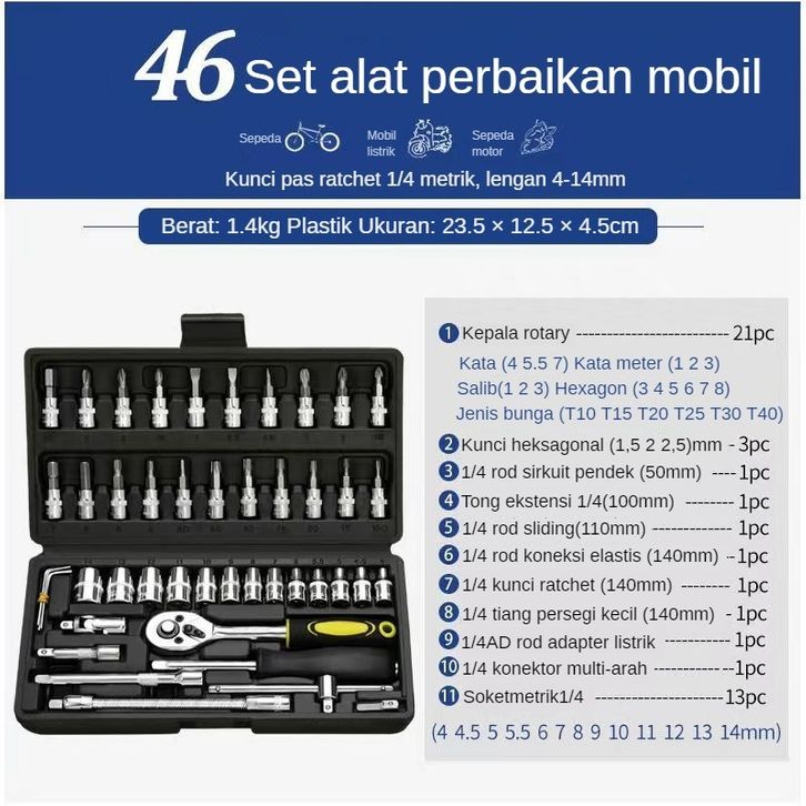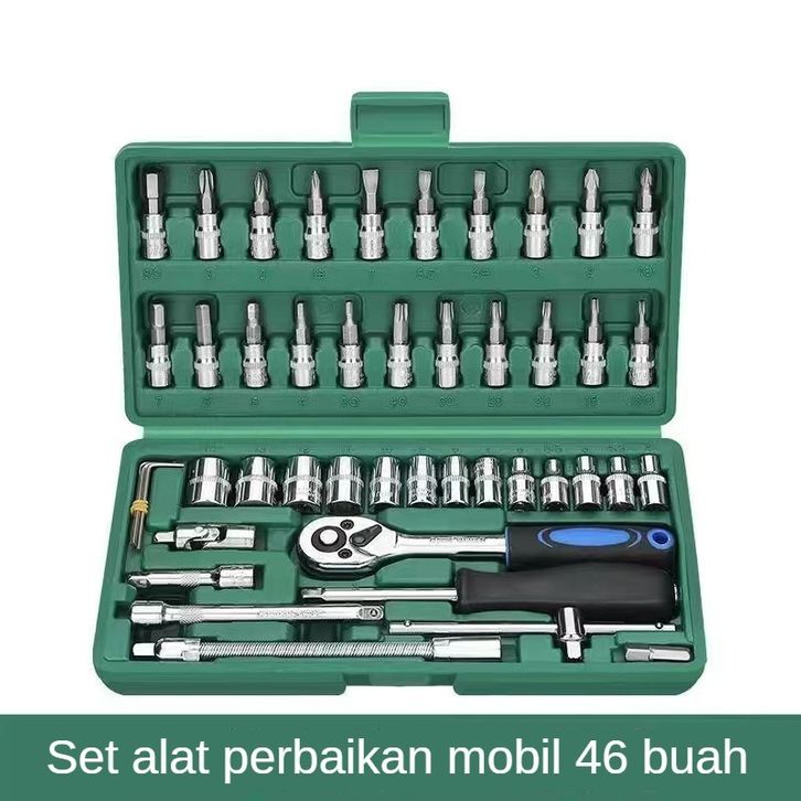 SHOCK KUNCI SET 46PCS KUNCI SHOCK LENGKAP 1/4 SOCKET UNIVERSAL KUNCI BENGKEL KUNCI SET