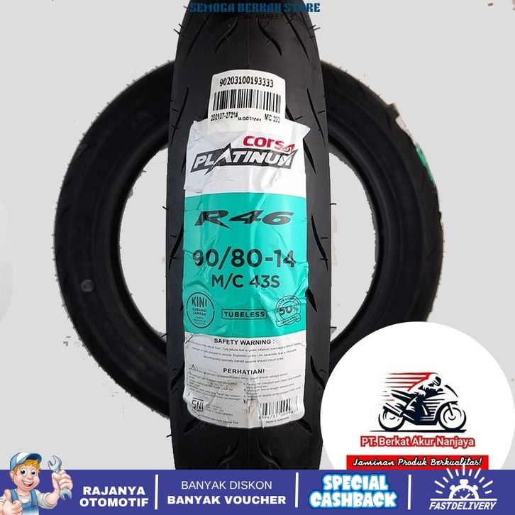 PAKET CORSA PLATINUM R46 90/80 ring 14 tubeless BONUS Pentil - BAN LUAR MOTOR MATIC RING 14 / BAN HONDA MAXXIS