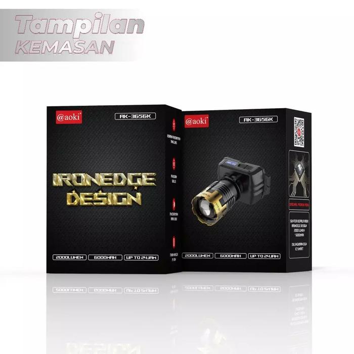 Senter kepala AOKI 3655A IRONEDGE DESIGN 2000 LUMENS 90W pro Dual baterai cahaya terang zoom jauh