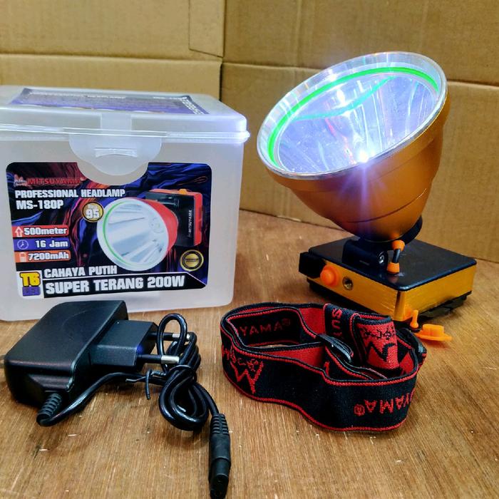 senter kepala 200 watt ms 180 super terang cahaya putih 3 mode cahaya led super terang White
