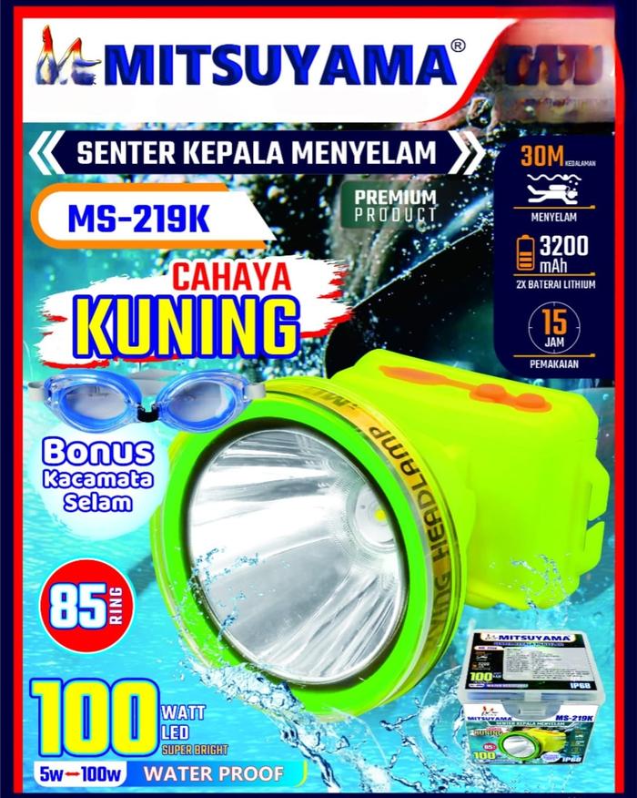 SENTER KEPALA MENYELAM 100WATT MITSUYAMA MS-219P PLUS KACAMATA RENANG - TAHAN LAMA - SUPER TERANG